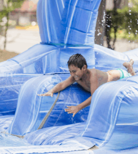 All campers participate in water play daily. Water play is a fun way for campers to cool off in the middle of the day. The water play activity may vary throughout the week, but will always be an active way for campers to cool down from the summer heat.